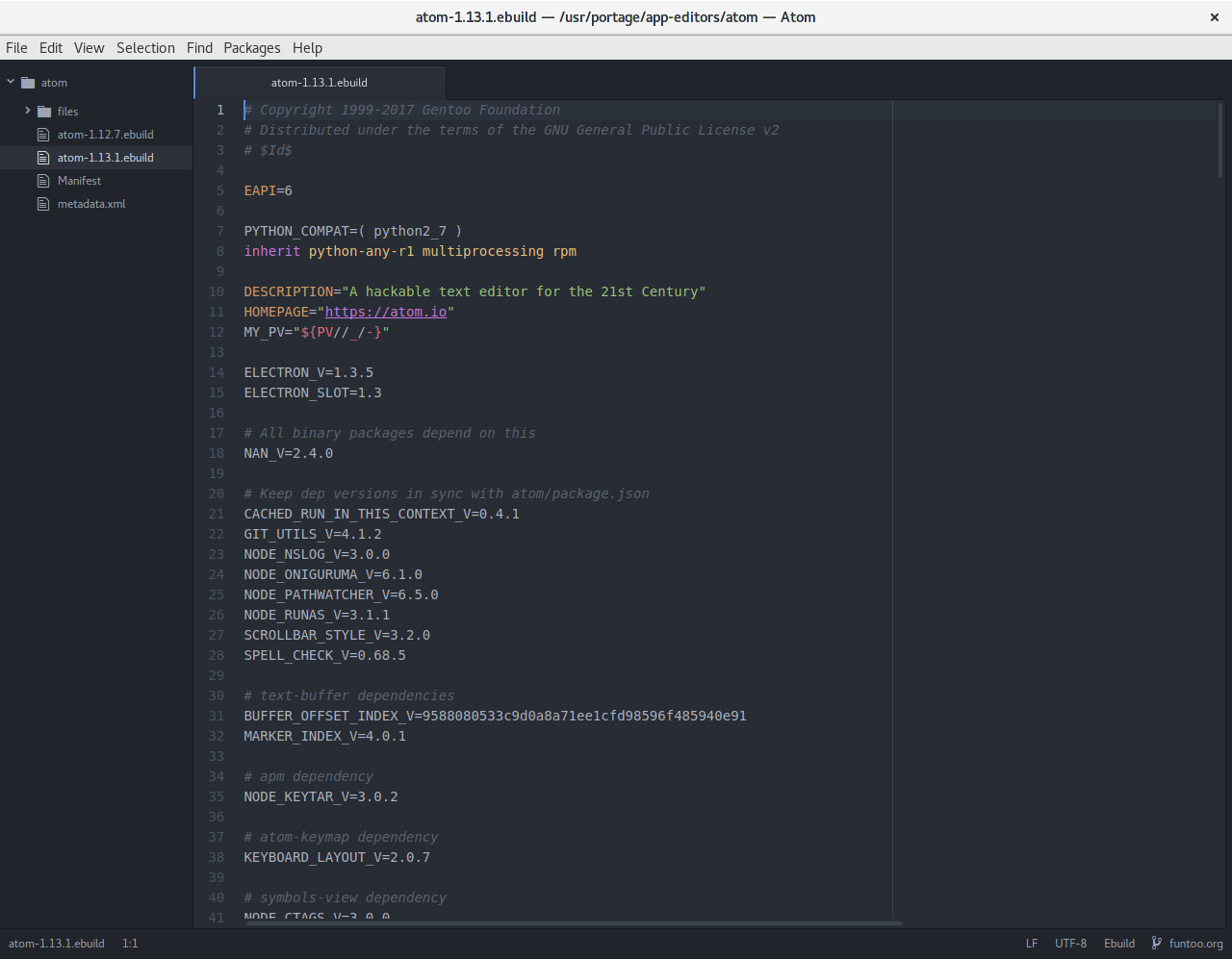 Atom editor with ebuild open.